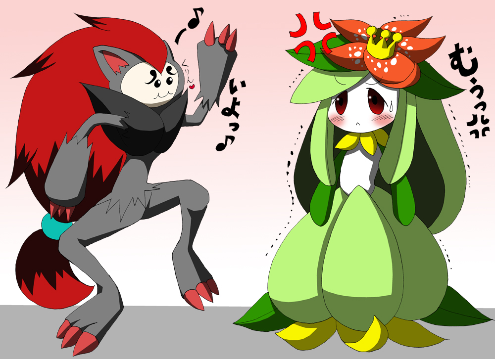 ポケモンには「ちょうはつ」という技があるのですが、これを使われるといわゆる間接攻撃(催眠とか麻痺とか引き起こす攻撃)が使えなくなり、通常攻撃しかできなくなるという困り者なのですが、私のお気に入りのドレディアが先日くらわされたときに後姿に怒りマークがポッと出て、いやだ可愛い状態だったのでこんなの描いてみました。