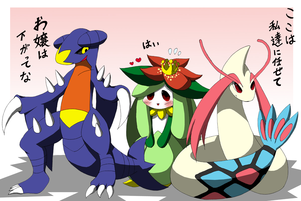 Wifiバトルでの主なチームメンバです⇒かよわいドレディアをガブリアス(左)とミロカロス(右)で守っているまさにこの絵のような感じで戦ってますが、それなりに強いですよw