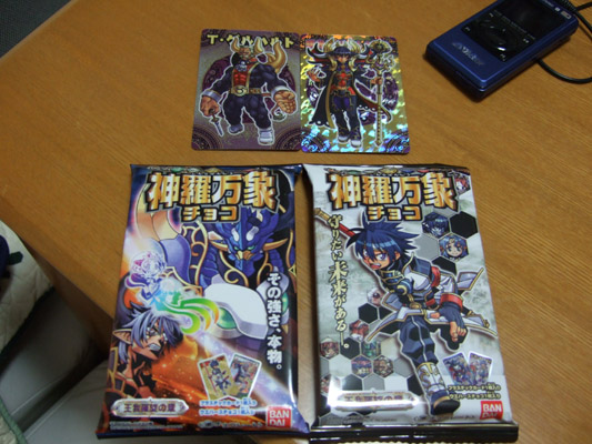 さて、左の写真はなんでしょう?(白々しい)これは「神羅万象チョコ」なるものですね~。先日職場でビックリマンが流行っている事に触れましたが、こちらはもう今の職場で既にシールを38/43収集が終了したので(私個人では30/43)そろそろビックリマンを買ってもダブってばかりになり金の無駄遣いに過ぎなくなってきたので(カロリーもバカにならない)なんとなく熱が冷めた雰囲気になってきました。