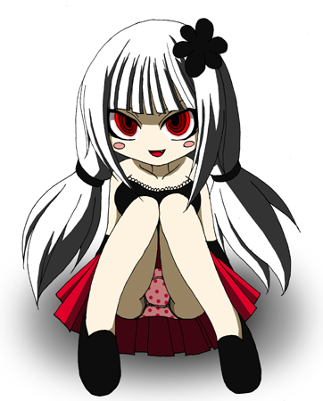 とまあ仕事の愚痴はさておき(↑こんだけ長文書いたわりにわりとどうでもよい出来事だったりする)、またまたマァル嬢を描きました(こっちのが重要)前回のがなんか超手抜きで描いたので出来上がりがとても気に入らなかったんですが、今回は結構気に入ってます(自分で言うな)私は女の子座りのポージングが人が引くほど好きなんですけど、今回はパンツを見せないようにスカートを無理やり間にいれたりとか最初やってたんですが、不自然すぎで気持ち悪かったのでいさぎよく丸見せにしてしまいました。こんな座り方するお嬢さんはあんまりいないでしょう。マァルは黒白赤系統しか使わないで描こうとしているキャラなので下着もピンクです。他は白か黒しかありえません(今回も初め黒にしようとしたんですがいまいちな感じだったのでピンクです)ところでザザザッと人の引く音が聞こえてくるような気がします。