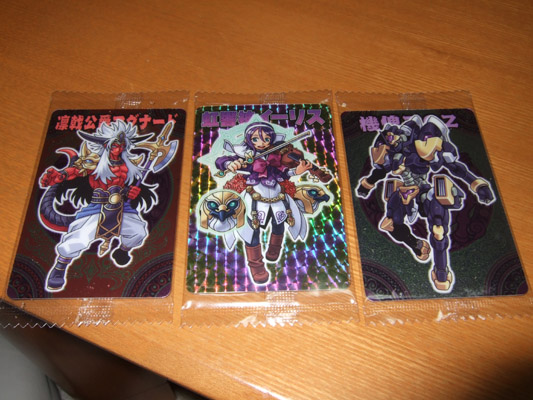で、写真左右のカードは開けるまでまだ持ってなかった残り二枚です。箱の並び順がわかっているので、ひょひょいと当てて出しました。これでコンプリートです。明日持ってって同僚に見せびらかします(この人は毎日何しに会社行っているんだろうとか突っ込まないでください、自分でもわからないので)
