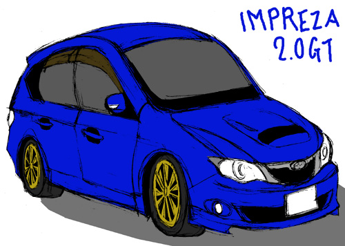 今日になって大分体調よくなってきたので暇つぶしに愛車を書いてみたり…。車って描くの難しいですね。なんか変に漫画チックになってしまいました。休日はこいつで乗り回すのがココ最近の楽しみの一つだったのに、今回の連休は残念です。