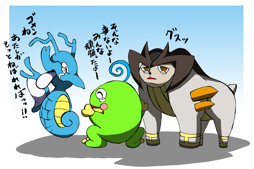 今日は久々にLCWをお休みして、ポケモン絵。先週からずっと会社帰りにこのパーティを使って競技場みたいなところで連続勝利し続けていたのですが、今日ついに敗退してしまった悔しさから描いた絵ですwこの3人のバランスはかなりすばらしい。