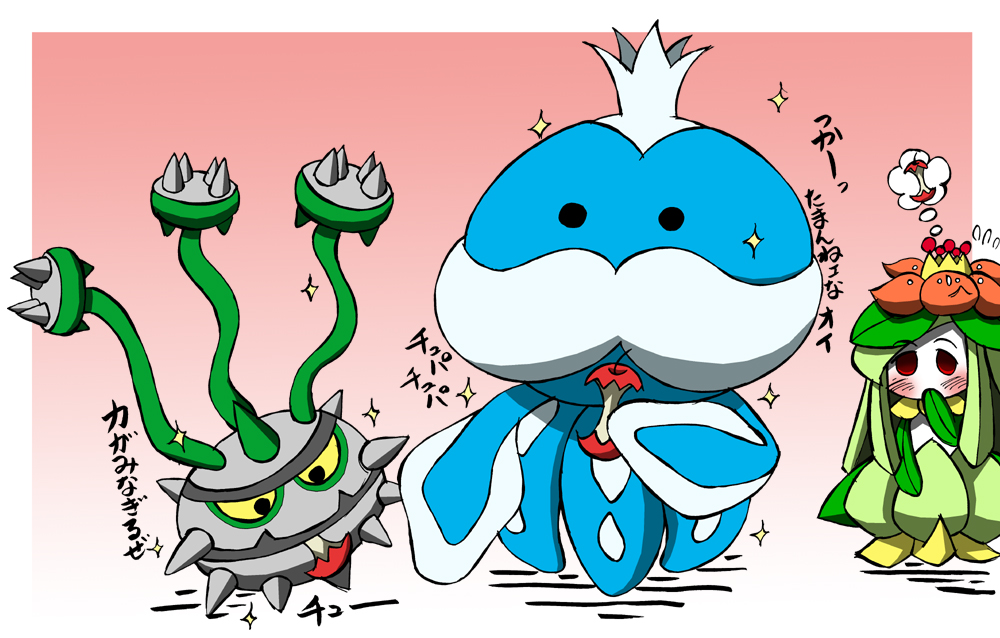「食べ残し」というターン毎にリジェネーション効果があるアイテムをすすっているポケモン達です。ポケモンにでてくる技やアイテム名ってなんかすさまじい。