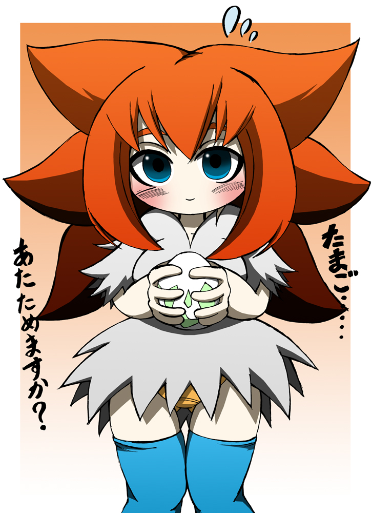 ウルガモスというポケモンの擬人化です。ポケモンのたまごを孵化させるのが得意なのでこんな絵に。全体的にごろっとした体格なので、この娘もそうしてみました(*´Д`*)