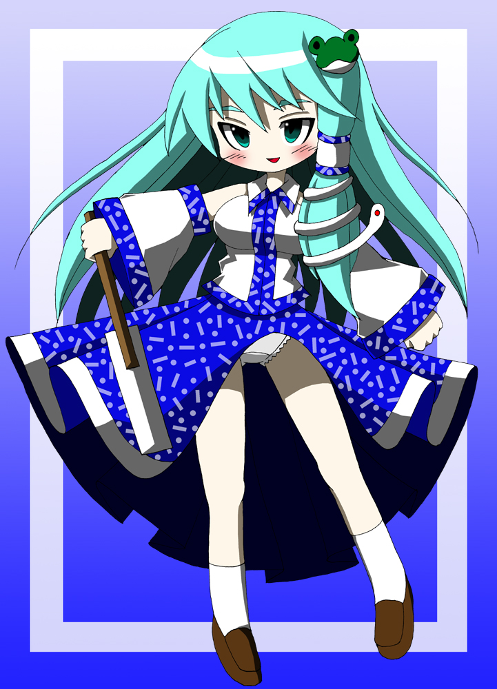そんなわけで(?)昨日に引き続き爽やかな色使いのキャラっていうことで早苗ちゃんです。女子高生です。現代を生きる女子高生なので間違いなく下着はうちらの世界と同様のものを履いているはずですね(*´Д`*)まぁそのほかのキャラ描くときも全て西洋おぱんつにしてしまっておりますが。前回のがかなりヘボかったので、今回は少しマシに描けたかなーとか思います。