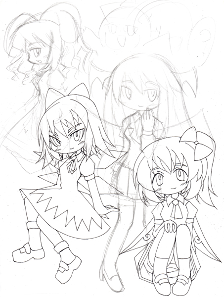 一枚の絵にごっそり30人くらい描ける人って一体どんくらい時間かけて描いているんですかねぇ。ちなみに⇒ここまでで二日間(時間にすると1時間くらい)かかっているんですが、もし30人描いたとしたら15時間(日にちにして30日)もかかってしまいますペン入れまでで…(´Д`)これに色塗ったら1ヶ月半くらいかかるんですかね。さすがにそこまでいれこめないですね~、描いてて楽しいレベルを超えてまで描きたくはないです(*´Д`*)飽きっぽいので(*´Д`*)