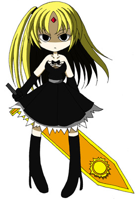 →のキャラは魔女界の女王様でマァルの幼馴染かつライバルという設定のキャラです。名前は「ベル」にしました。マァルよりも幼児体型気味です。なんか黒目の部分が真っ黒なキャラが描いてみたかったんですよね、外見的にはツンデレ的な感じですが、そんな事はなく、面倒見のいいリーダー的な性格のつもりですw